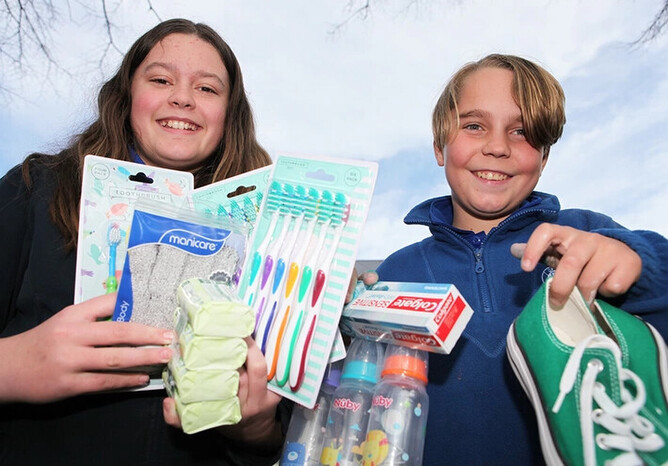 Last week their classroom became a collection point for donated clothes, shoes, toys, books and school bags, and personal care products such as toothbrushes, toothpaste and soap.