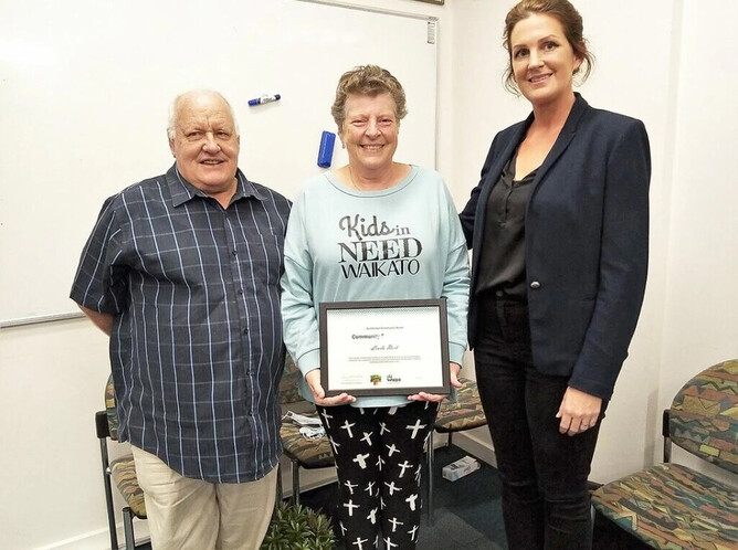Linda Roil, who founded Kids in Need Waikato and has helped brighten the lives of thousands of youngsters in care, has been presented with a Cambridge Community Board Community Service Award.