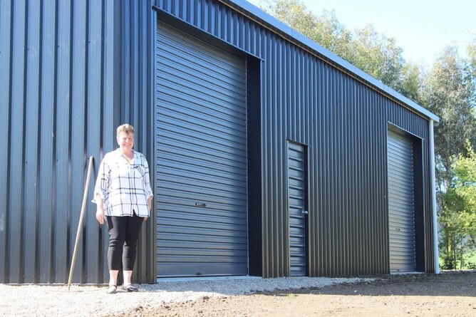 Linda Roil in front of her enormous new shed, which will help take Kids in Need Waikato to the next level.