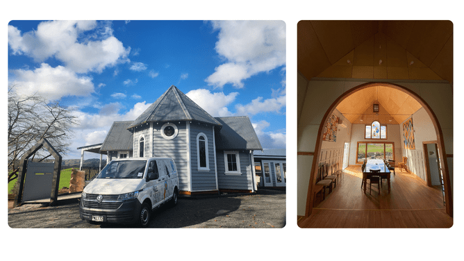 In mid 2018, with Kids in Need Waikato newly formed, Graeme Roil approached Bishop Steve Lowe with an idea to use the building in support of the charity. In December 2018 after consultation with the College and the Sisters, the Bishop confirmed the Chapel would be available to KIN. Following design and consenting, it was moved to KIN HQ in January 2020. Since then, thanks to the support of Yankee Haulers, Barnard Construction, and many helping hands, the Chapel has been lovingly restored.