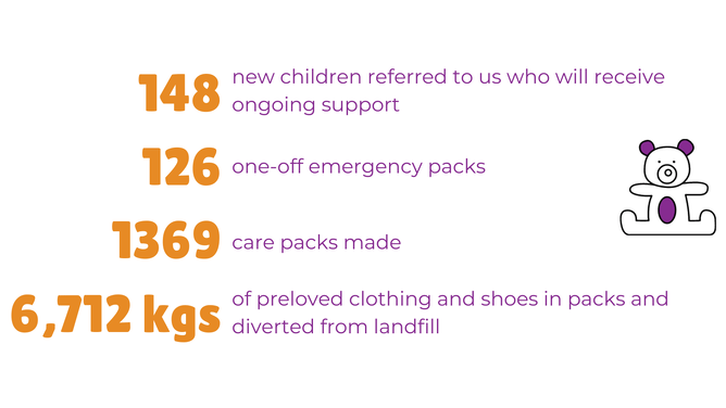 There is a lot happening across Kids in Need with all of our different programmes, events, and day-to-day operations. So far this year, thanks to your generosity - 1,369 children have received personalised care packs put together by our wonderful team of staff and volunteers, each one helping a child feel supported and valued.